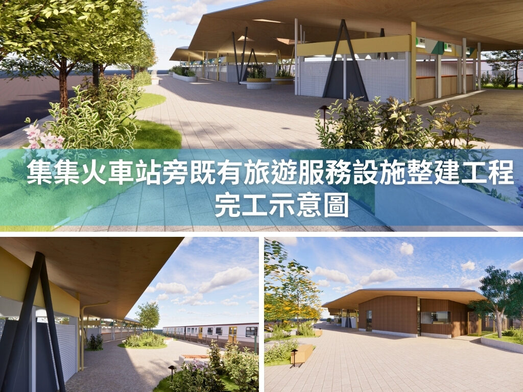 此外,集集火車站旁的鐵皮攤販區也正進行改建,未來將打造為結合旅客服務中心、特色商場、餐飲及交通轉運站設施的山形市集。工程總經費超過新台幣7,198萬元,預計在火車站復駛前完工,全面提升火車站周邊的觀光品質。